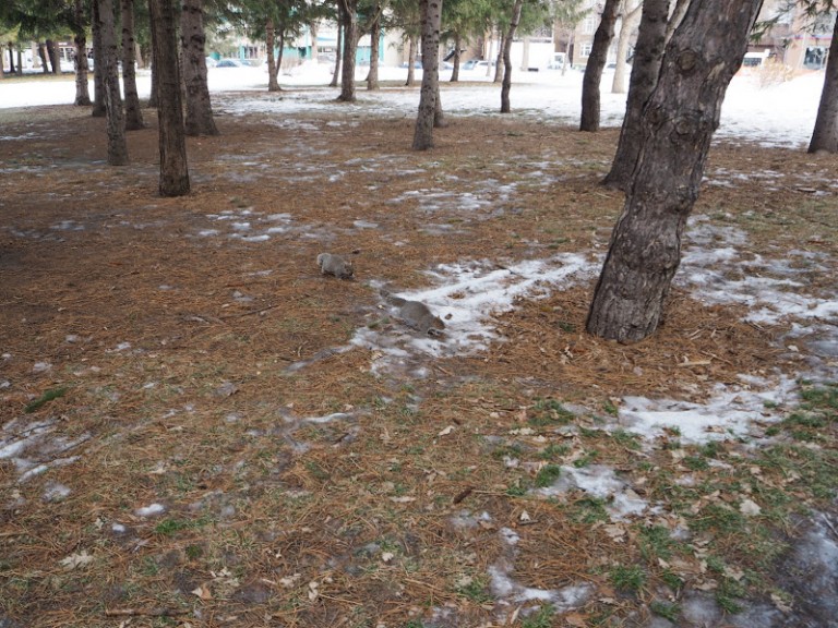 Lors de ma premier matin, Isa et moi décidons d’aller faire un tour dans le parc d’à côté qui commençait à déneiger tandis que Joy s’occupait de trucs à l’appart. But de l’expédition : voir des écureuils. Et j’ai été servie : gris ou blancs, qui se pousuivent. J’ai fait beaucoup trop de “awwwwwwwww” en peu de temps. Il y avait aussi l’étang gelé pour faire du patin, le tout bordé par des roseaux dorés et j’avoue que le contraste était canon. Mais lors de cette petite balade, nous avons été confrontées à un grave danger…